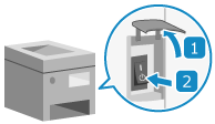 Öffnen Sie die Abdeckung des Netzschalters, und drücken Sie den Netzschalter in die AUS-Position (