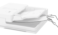 Bei dünnen Originalen, die sich nur schwer in die Zufuhr einlegen lassen, legen Sie das Original ein, müssen Sie das Original leicht gekrümmt einlegen und dürfen es nicht zu weit einführen. Wenn Sie das Original zu weit einführen, wird es nicht richtig eingezogen, was zu einem Papierstau führen kann.