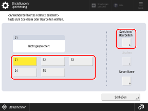 Wenn Sie eine Taste mit einem bereits gespeicherten Format auswählen, werden die gespeicherten Informationen überschrieben.