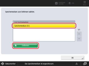 Wählen Sie das zu entfernende USB-Speichergerät aus, und drücken Sie [Entfernen].