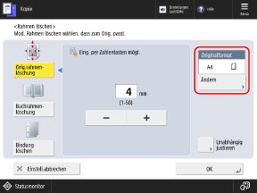 Drücken Sie auf [Originalrahmenlöschung].