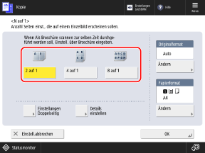 Wählen Sie die Anzahl der Seiten aus, die auf einer Seite des Papiers kombiniert werden sollen. Wenn Sie zum Beispiel [4 auf 1] wählen, werden vier Seiten auf einer Seite des Papiers kombiniert.