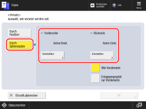 Um die Rückseite mit den gleichen Einstellungen wie die Vorderseite zu konfigurieren, wählen Sie [Wie Vorderseite].