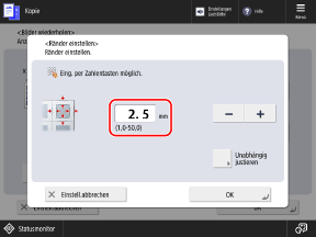 Um separate Maße für den oberen, unteren, linken und rechten Rand einzugeben, drücken Sie [Unabhängig justieren], und geben Sie die Randmaße ein.