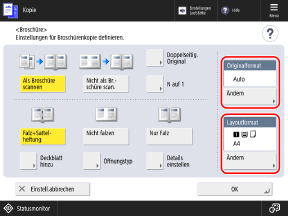 Drücken Sie [Ändern] unter [Originalformat], wählen Sie das Format des Originals und drücken Sie [OK].