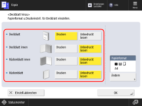 Legen Sie fest, ob auf jede Seite, die das Deckblatt bildet, kopiert werden soll.