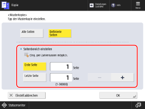 Drücken Sie [Erste Seite] und [Letzte Seite], um sie auszuwählen, und geben Sie die Werte ein.