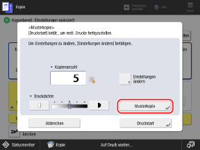 KopierbildschirmDer Bildschirm [Musterkopie] wird angezeigt.