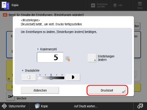 Bevor Sie [Druckstart] drücken, geben Sie die Anzahl der Kopien erneut über die Zahlentasten ein.