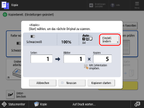 Ändern Sie die Kopiereinstellungen, und drücken Sie [OK].