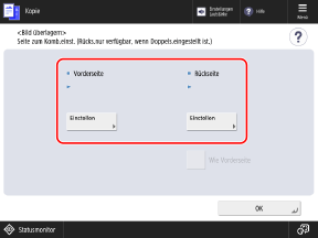 * Um die Rückseite mit den gleichen Einstellungen wie die Vorderseite zu konfigurieren, stellen Sie zunächst die Vorderseite ein und wählen dann [Wie Vorderseite].