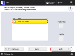 Wählen Sie das zu überlagernde Formularbild aus, und drücken Sie [Weiter].