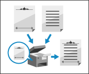 Sie können praktische Funktionen zum Kopieren verwenden, z. B. nur einen Teil eines Originals extrahieren und kopieren oder mit unterschiedlichen Einstellungen gescannte Originale beim Kopieren kombinieren. Sie können auch ein Wasserzeichen wie "CONFIDENTIAL" einbetten, um die Sicherheit der kopierten Dokumente zu erhöhen.