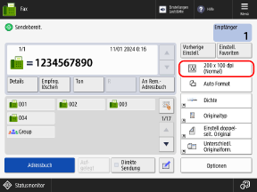 Drücken Sie auf dem Faxbildschirm die Taste zur Einstellung der Auflösung.