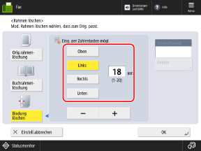 * Sie können keinen Löschrahmen für das Scannen einstellen, wenn Sie Direktsendung oder manuelles Senden verwenden.
