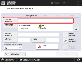Drücken Sie [Name der Bedingung], geben Sie einen Namen für die Weiterleitungsbedingung ein, und drücken Sie [OK].