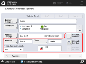 Wenn Sie den definierten Empfänger aus dem Adressbuch löschen, wird die Weiterleitungsbedingung automatisch deaktiviert. Geben Sie den Weiterleitungsempfänger oder den Speicherort erneut an und aktivieren Sie dann die Weiterleitungsbedingung nochmals.