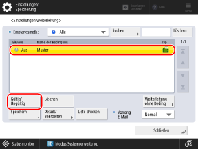 Wählen Sie eine registrierte Weiterleitungsbedingung aus, und drücken Sie [Gültig/Ungültig].
