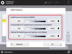 Verwenden Sie das Bedienfeld, um die Dichte zu korrigieren. Sie können die Korrektur nicht über Remote UI von einem Computer aus vornehmen.