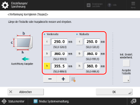 Wenn die Korrektur der Verformung (Trapez) durchgeführt wird (nur 8100 Serie)