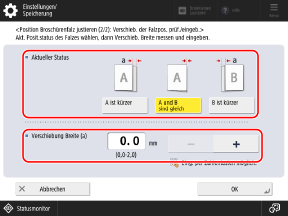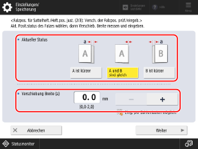 Wählen Sie den aktuellen Status der Falzposition, und passen Sie die Verschiebebreite an.