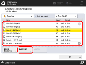 Wählen Sie einen Papiertyp in der Liste, und drücken Sie [Duplizieren].