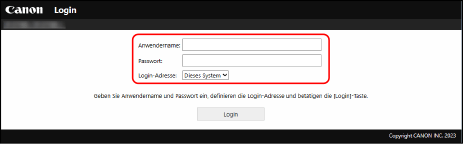 Der Anmeldebildschirm von Remote UI wird angezeigt.