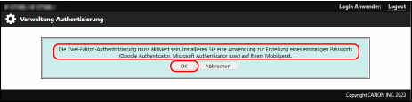 Wenn die Meldung zur Aktivierung der Zwei-Faktor-Authentifizierung angezeigt wird