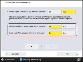 Setzen Sie diese Option auf [Ein], um die Timeline auch für nicht authentifizierte Benutzer anzuzeigen, wenn die Benutzer nicht am Gerät angemeldet sind oder es sich um Gastbenutzer handelt.