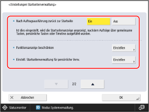 Bildschirm [Startseite]Der Bildschirm [Einstell. Startseitenverwaltung] wird angezeigt.