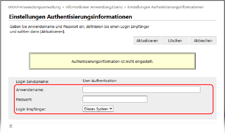 Je nach MEAP-Anwendung müssen die Authentifizierungsinformationen möglicherweise festgelegt werden.