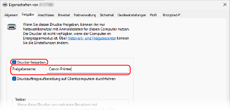 Konfigurieren der Einstellungen für die Freigabe des Druckers