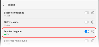 Aktivieren Sie [Druckerfreigabe] und klicken Sie auf [