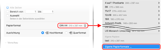 Wählen Sie für [Papierformat] die Option [Eigene Papierformate].