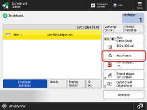 Drücken Sie [Auto], und wählen Sie das Datenausgabeformat (Papierformat der gescannten Daten).