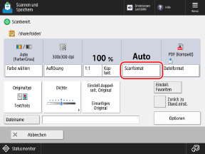 Drücken Sie auf dem Scanbildschirm die Einstellungstaste für das Originalformat.