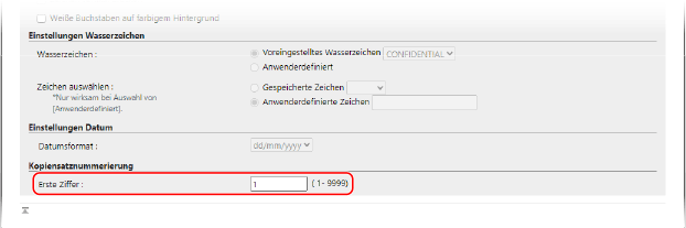 Geben Sie unter [Kopiensatznummerierung] die Startnummer ein.