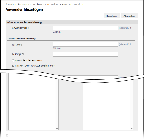Bildschirme [Anwender hinzufügen] und [Anwenderinformationen bearbeiten]