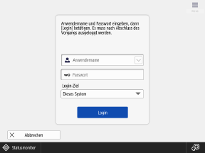 Die Benutzer melden sich mit einem Benutzernamen und einem Passwort über die auf dem Bedienfeld angezeigte Tastatur an. Wenn der Benutzername und das Passwort nur aus Zahlen bestehen, können Sie die Einstellungen so konfigurieren, dass die Anmeldung nur über die Zahlentasten erfolgt.