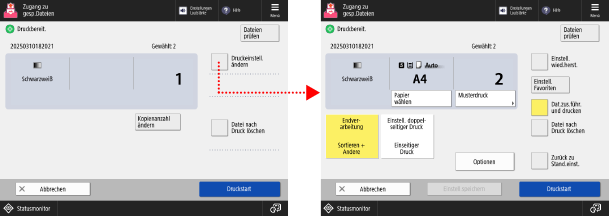 Drücken Sie auf [Druckstart] unten rechts auf dem Bildschirm, um den Druckvorgang zu starten.