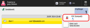 Um die E-Mail-Adresse eines angemeldeten Anwenders als Empfänger zu definieren, drücken Sie [An eigene Adresse senden].