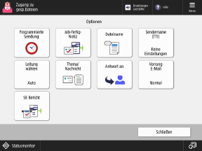 * Die beim Senden einer Mailboxdatei verwendeten Einstellungen können nicht als „Favoriteneinstellungen“ oder als Taste auf dem Bildschirm [Startseite] gespeichert werden.