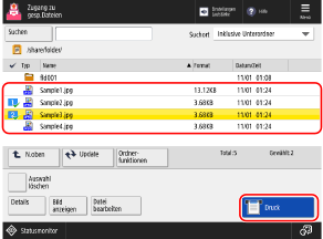 * Wenn mehrere Dateien ausgewählt sind, werden sie in der Reihenfolge gedruckt, in der sie ausgewählt wurden (Reihenfolge der Nummern der Kontrollkästchen).
