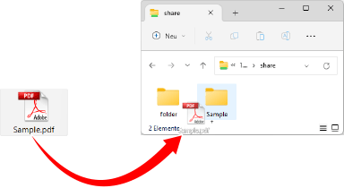 Sie können von einem Computer (Windows) auf Erweiterter Platz zugreifen und Dateien auf dem Computer direkt in den Erweiterter Platz verschieben oder kopieren.