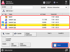 Wählen Sie die zu druckende Datei aus, und drücken Sie [Drucken].