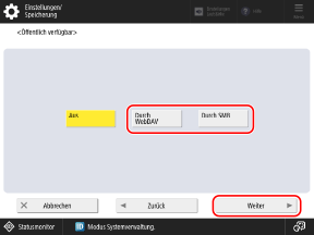 Wählen Sie die Methode aus, um den Erweiterter Platz für die Öffentlichkeit zugänglich zu machen, und drücken Sie [Weiter].