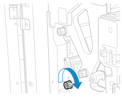 * Die Andruckeinheit dient dazu, einen sauberen Falz in der Mitte des Papiers zur Erstellung einer Broschüre zu erzeugen. Wenn die Andruckeinheit nicht in der richtigen Position ist, kann das mit Sattelheftung zu versehende Papier nicht in das Broschürenfach transportiert werden.