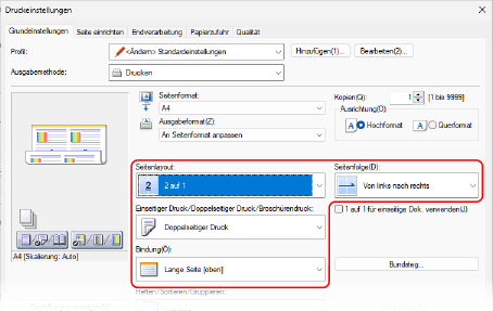 [Seitenfolge] wird angezeigt, wenn [Seitenlayout] auf eine andere Einstellung als [1 auf 1] gesetzt ist.