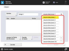 El grupo creado se registrará en la lista de direcciones seleccionada aquí.