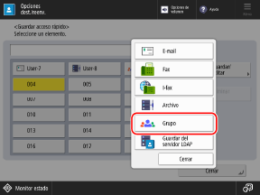 Si registra un grupo desde la pantalla de lectura o de fax, este paso no es necesario. Vaya al paso